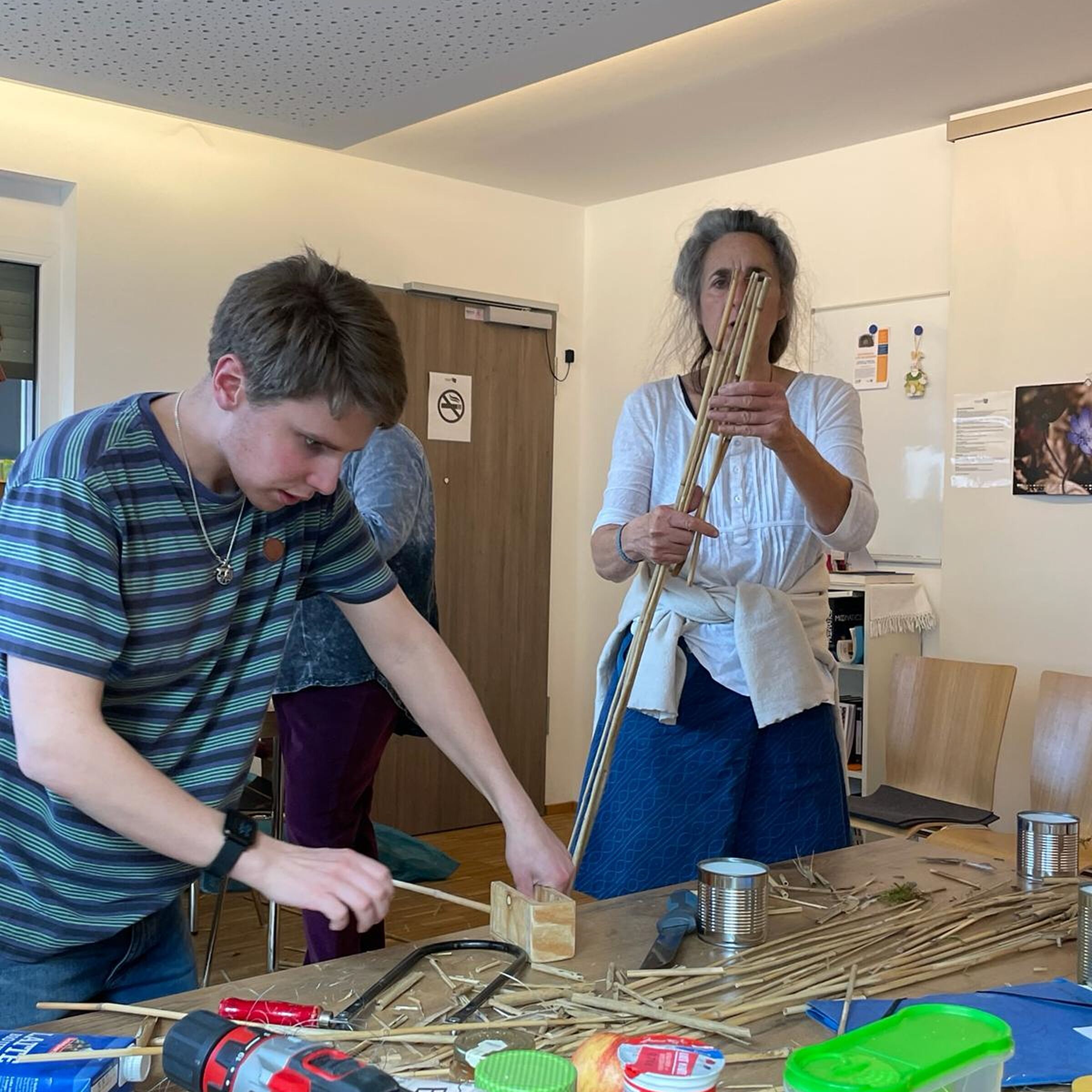 Am Samstag, 16.03.2024 fand im Raum 21 in Immenstadt ein Workshop Wildbienenhotelbau statt. Die Umweltgruppe „NaturverNEZler“ des Naturerlebniszentrums Allgäu baute zusammen mit Interessierten nützliche und dekorative Bruthilfen für Wildbienen. Die Teilnehmer lernten warum Wildbienen für uns Menschen und die Natur wichtig sind und was es beim Bienenhotel alles zu beachten gilt, damit sich die Brut gut entwickeln kann. Vor allem sollte man auch für geeignete Futterquellen, also Blühpflanzen im Garten oder Balkon sorgen. Die NaturverNEZler sind Menschen mit unterschiedlichen Handicaps und werden seit 3 Jahren vom Naturerlebniszentrum Allgäu unter Leitung von Christine Hanser zu Umweltassistenten ausgebildet, mit dem Ziel eigenständig Umweltthemen anderen Menschen zu vermitteln.