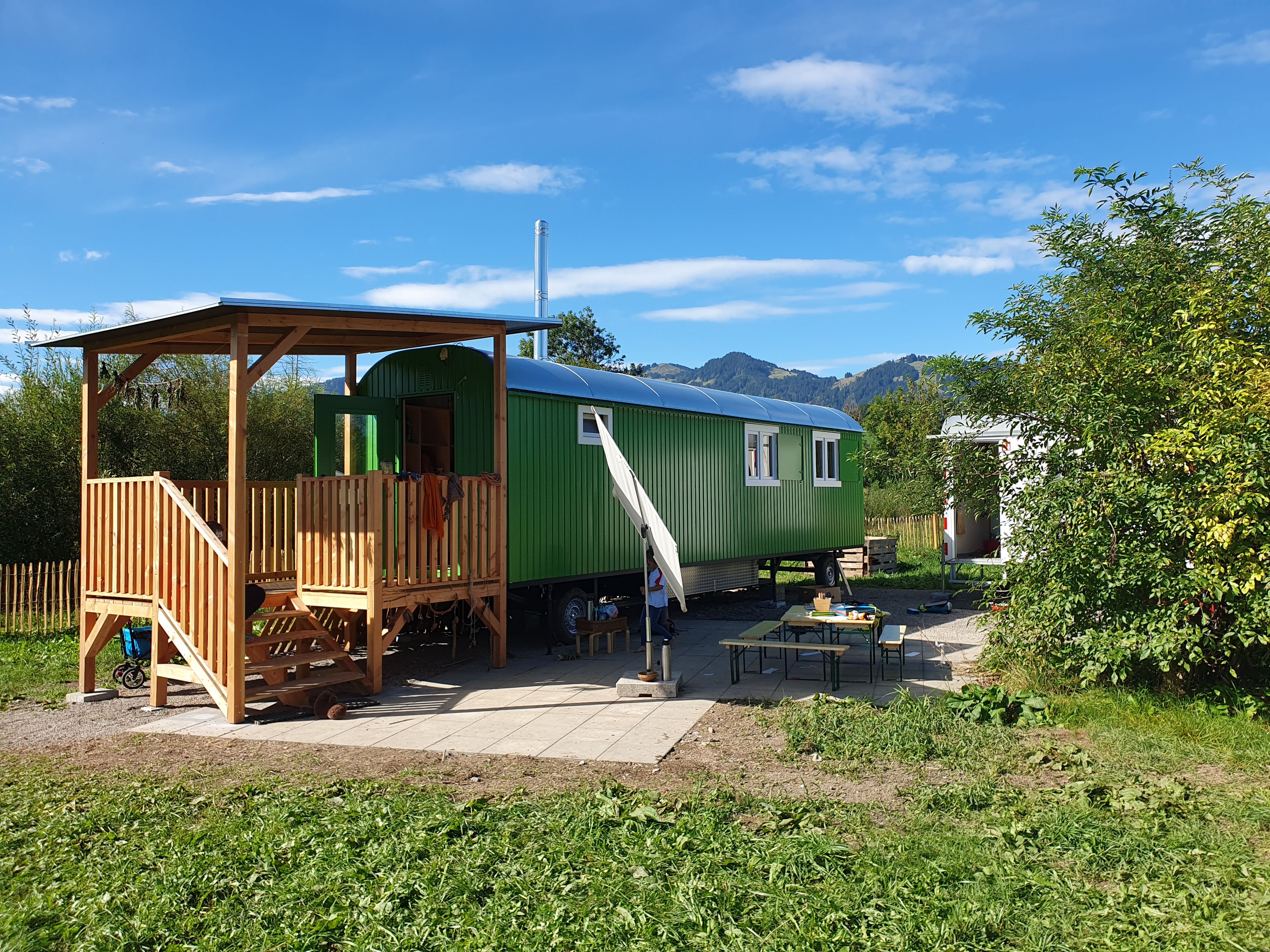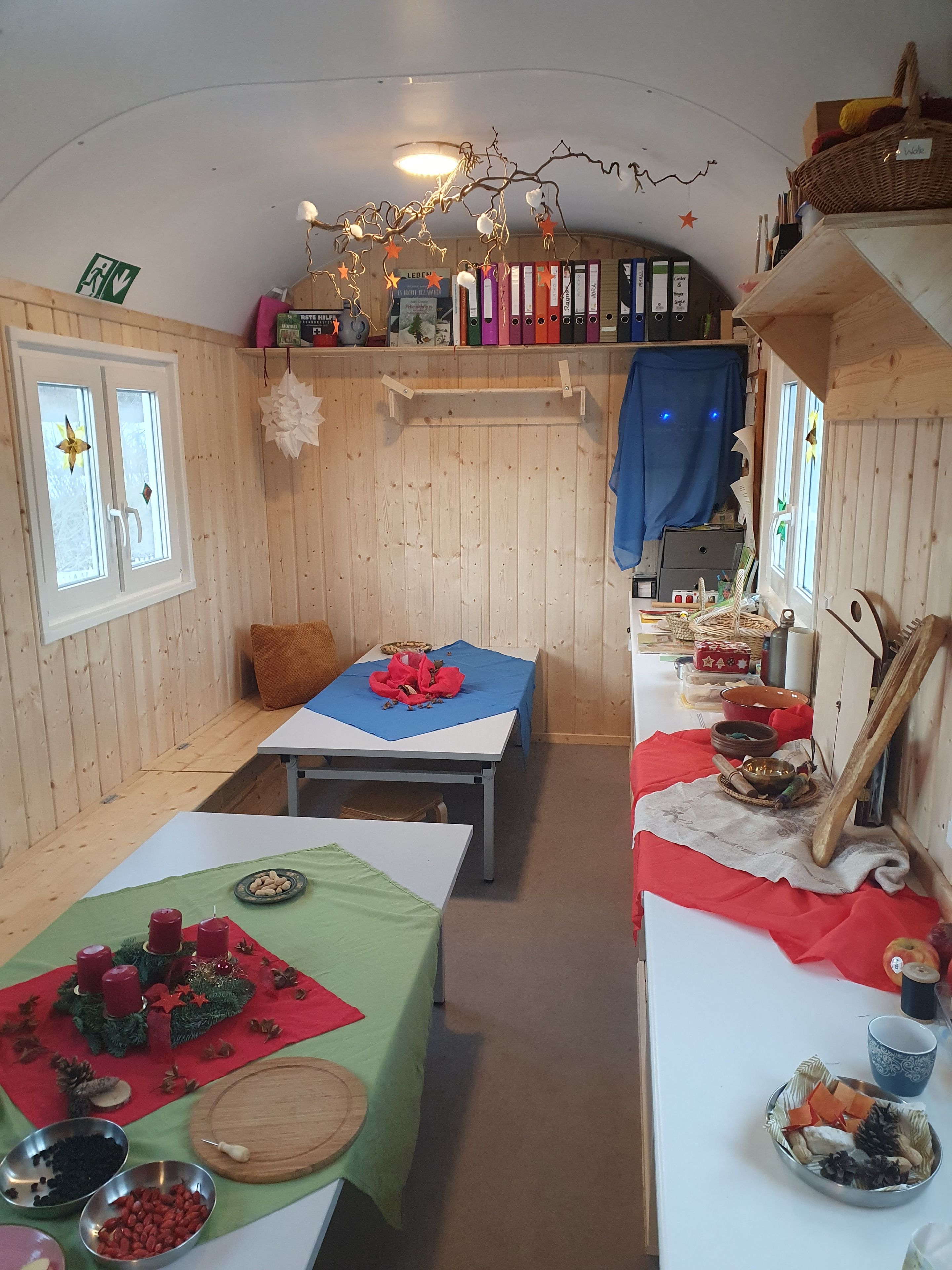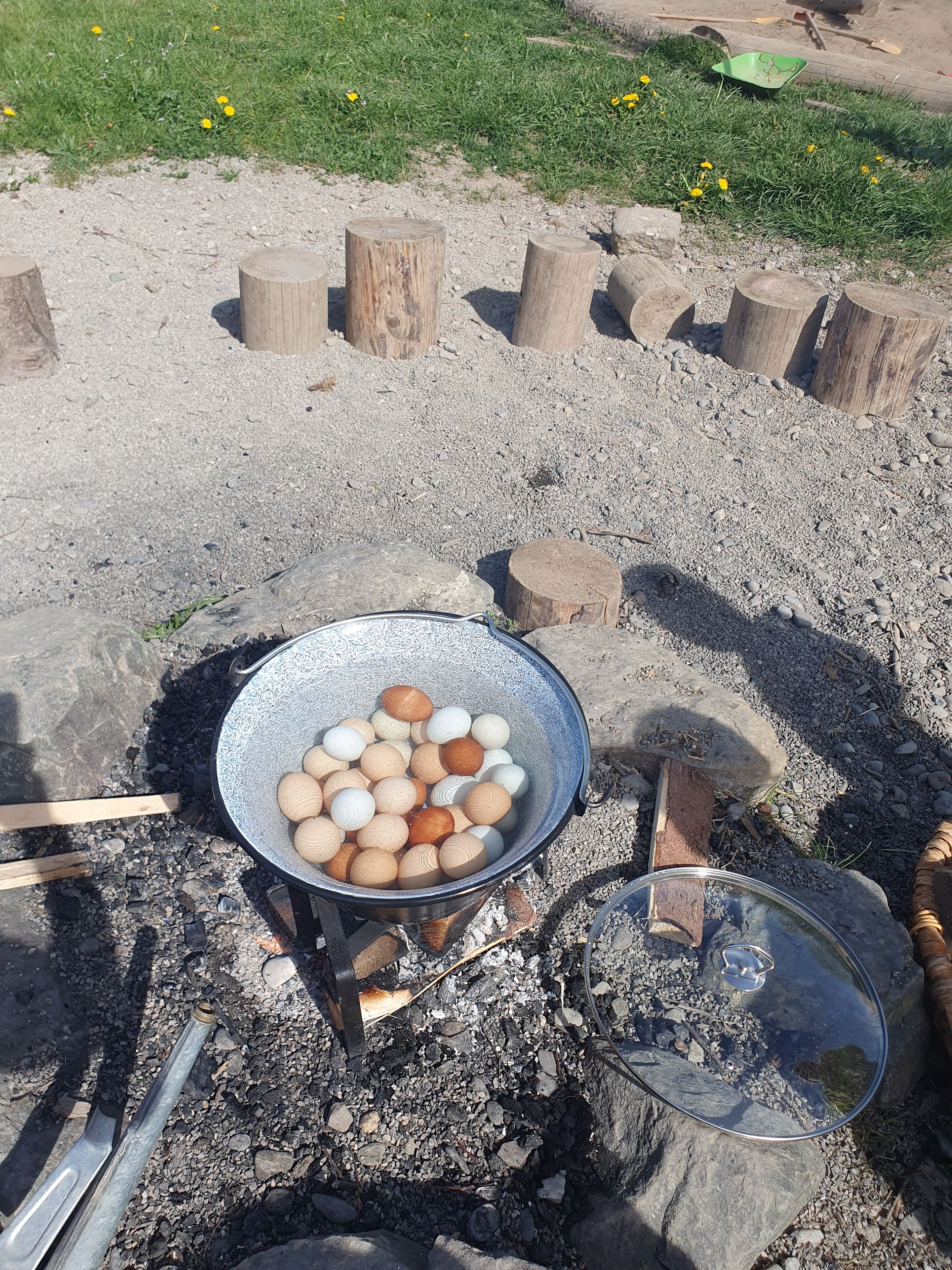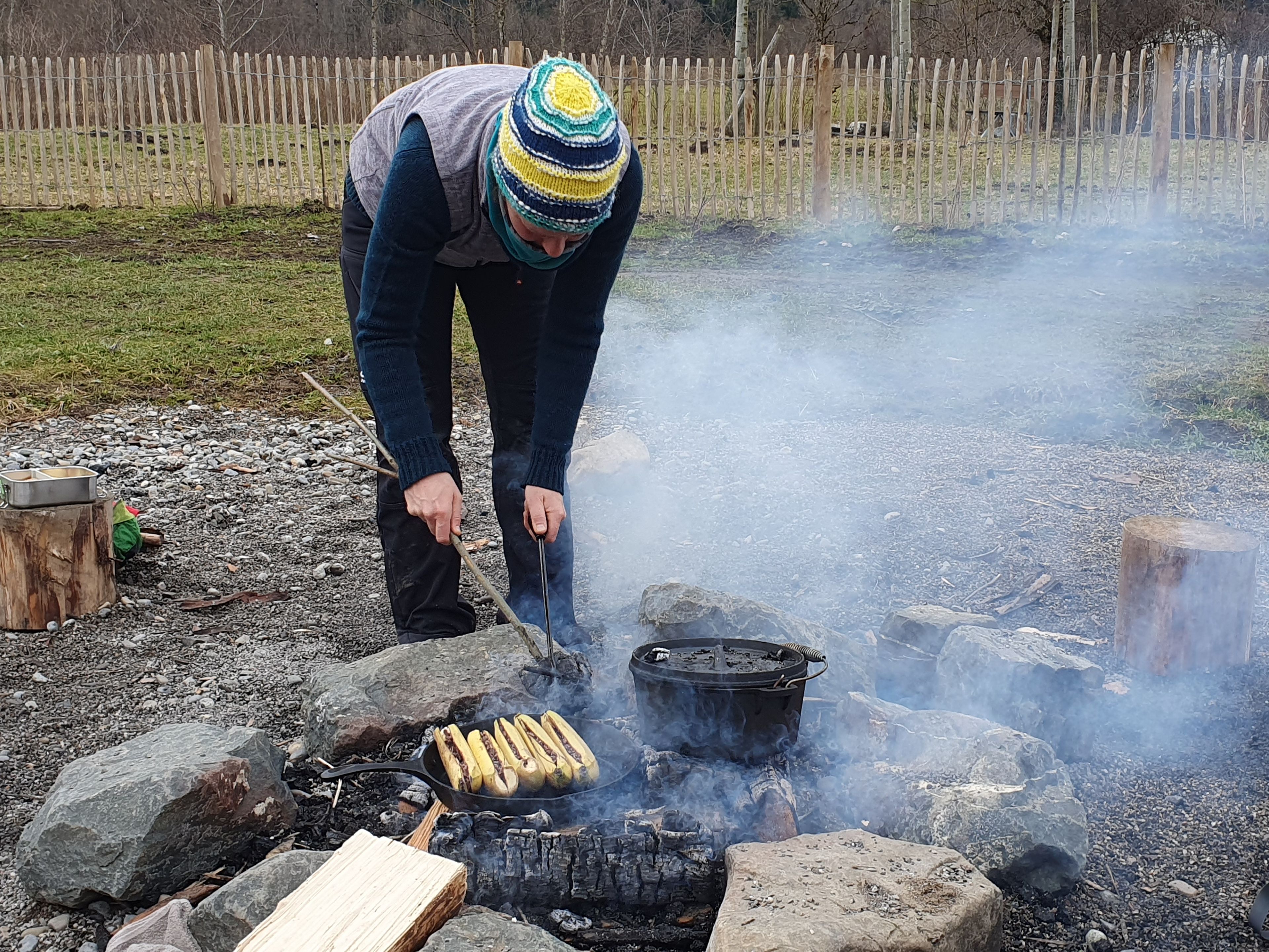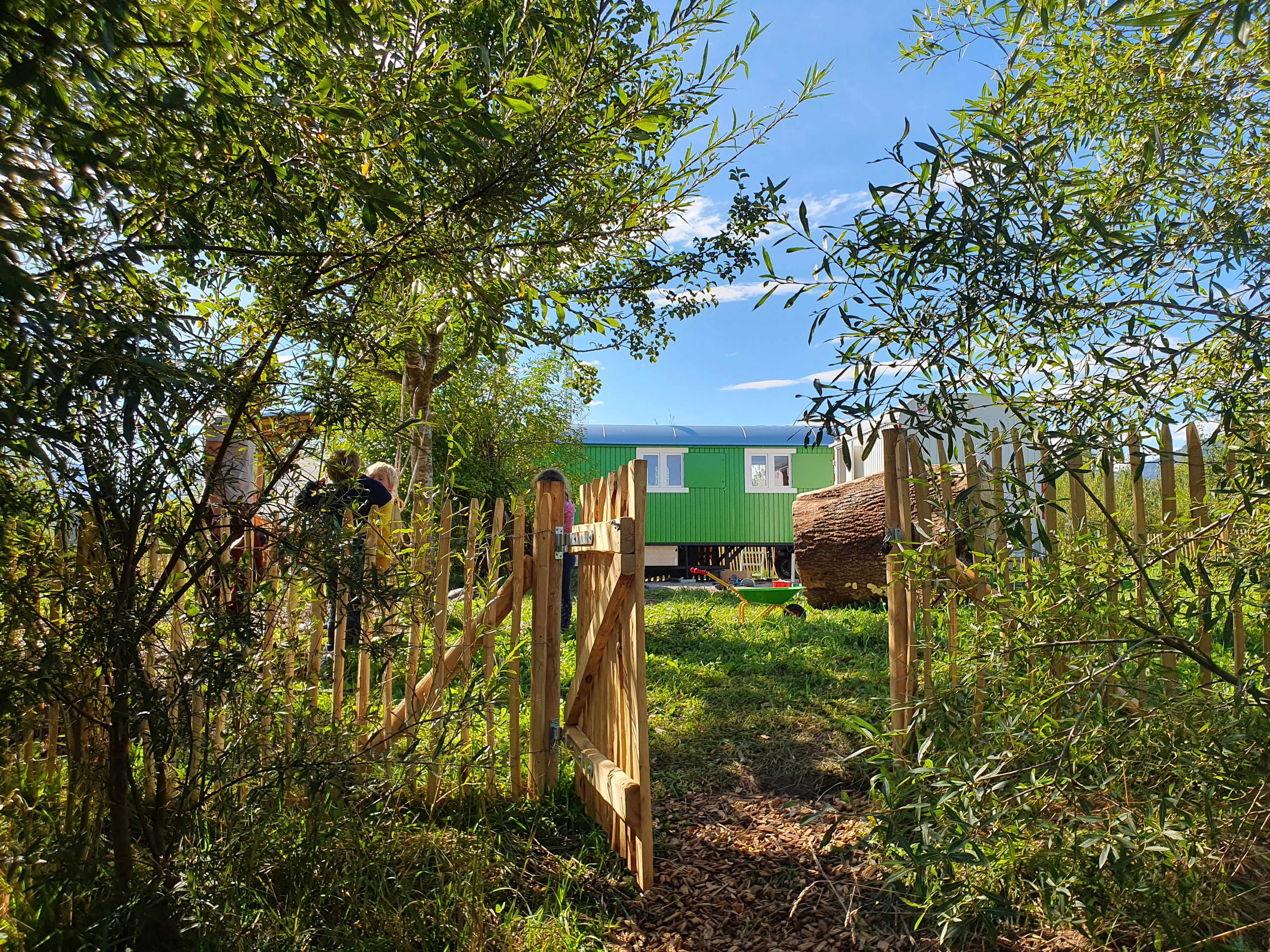 Draußen spielen, lernen, forschen, natürlich mit einem gemütlichen Bauwagen zum Aufwärmen und allen erforderlichen Sicherheitsvorkehrungen. Darüber hinaus gibt es auf dem Gelände unter anderem eine Feuerstelle, einen eigenen Zugang zum Teich, einen Hügel und viel Raum für Bewegung.