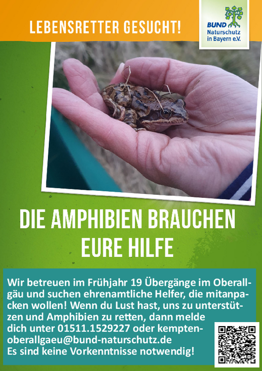 Die BN Kreisgruppe Oberallgäu sucht ehrenamtliche Helfer*innen, die im Frühling mithelfen, Amphibien auf ihrer Wanderung zu unterstützen.